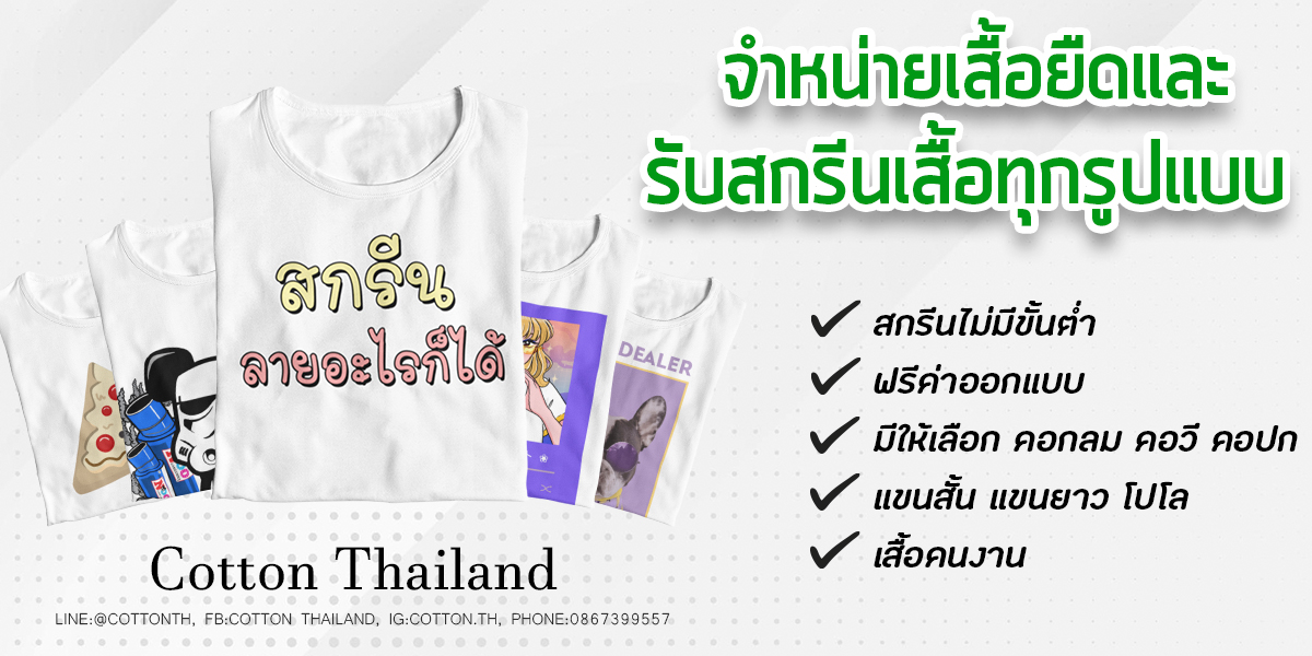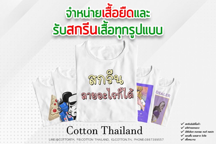 ตัวเนื้อผ้าสามารถนำไปสกรีนได้หลายรูปแบบ Silk screen, Discharge screen, DTG, DFT, DTF